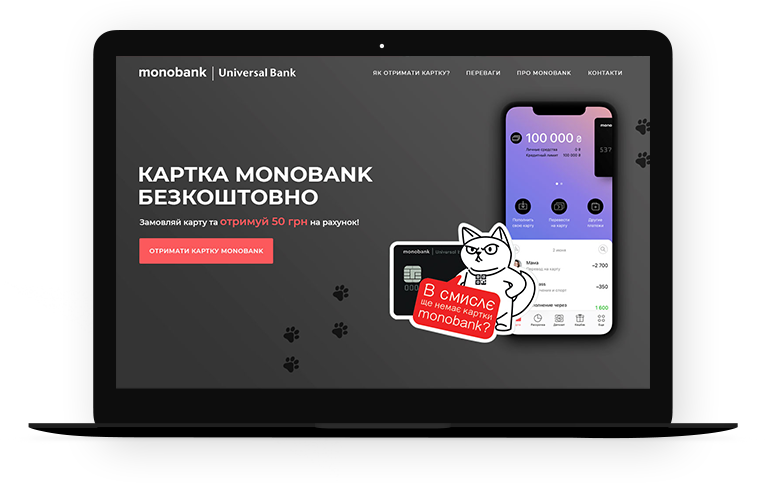 Goals:Create a promotional website to attract new users and present the advantages of Monobank.